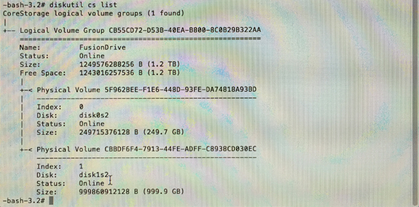 これで正真正銘、Mac OS X が認識する本物の Fusion Drive に成りました。感慨無量です。