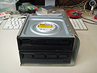 | DVDドライブの交換(before) 上段を下段と同じ DVDドライブに交換する。 |