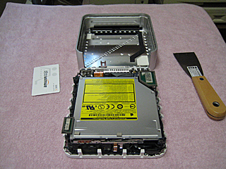 | ドライブユニットを外します。マザーボードが現れました。 何だか思ったよりも簡単ですね。 |