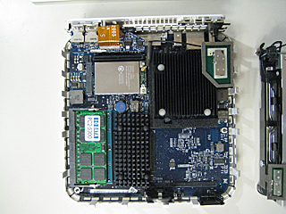 | 裏面 手前左上の AirMacアンテナと、茶色のフィルム・ケーブルに注目! |