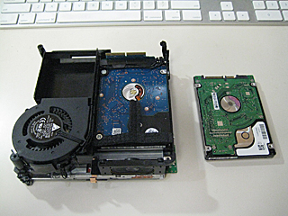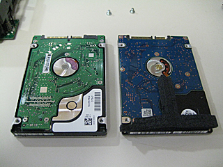 | 左:純正内蔵 HDD(60GB) 右:交換内蔵 HDD(500GB) |