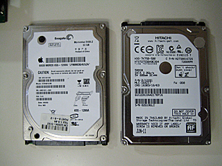 | 左:Seagate 60GB Serial ATA 5400rpm 右:HITACHI 500GB Serial ATA 7200rpm |