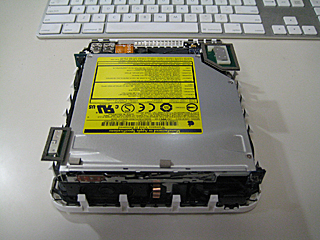 | 上部枠を外します。と言うか上部枠を残して外す。 DVD ドライブが一番上にありますね。HDD は何処だ? |