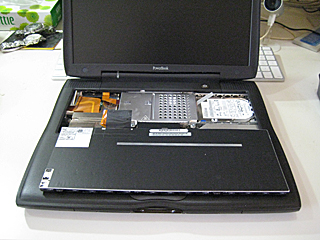 以前、私が iBook の内臓 HDD 交換 をした時に比べると、余りにも簡単過ぎる。ユーザーに優しい筐体と言える。