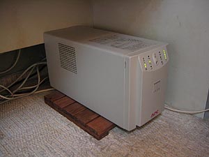 メインマシン(G4)には 1,000W の UPS がある。机の下にこんな風に置いてある。