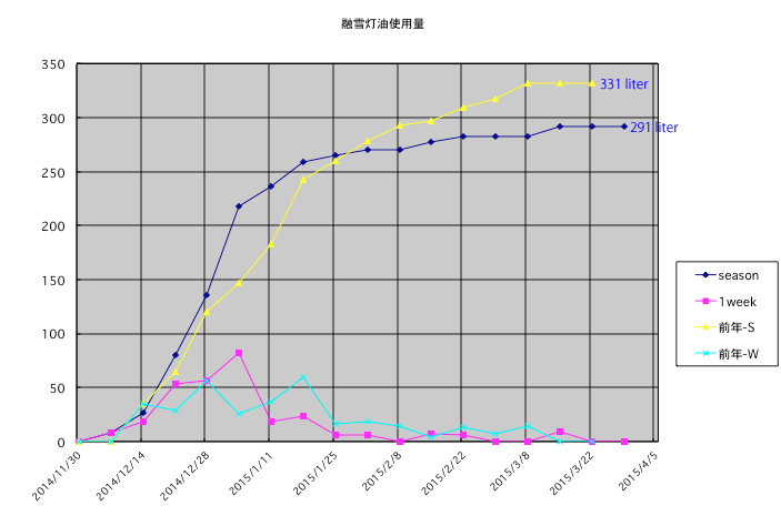 我が家の屋根融雪 2015(2014.11.30〜2015.03.22)