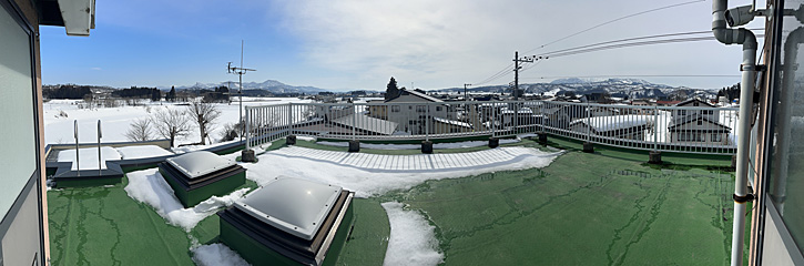 屋上の積雪(残雪)はこんな感じで雪は殆どありません。今週もサラッと雪は降りましたけどね。