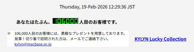 切り番訪問日時は、19日のお昼「Thursday, 19-Feb-2026 12:29:36 JST」の様でした。