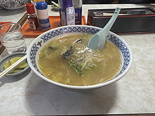 | 勿論、昼食付きです。朝から準備と後片付け迄ですからね。 会場近くの食堂で、お好きな物を・・・ 色々頼むと面倒なので、味噌ラーメン一択に成った。 私は中華そば(大盛り)が食べたかったが、まあイイでしょう。 |