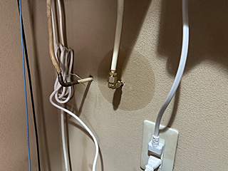 築 22年、左側の灯油配管の色が茶色いこと、22年前は左側の灯油配管も右側の配管の様に白かった。