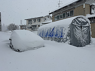 今日は何もしない予定でしたが、お袋さんから「パイプ車庫の雪を下ろせ」と言われ、雪下ろし&除雪をしました。