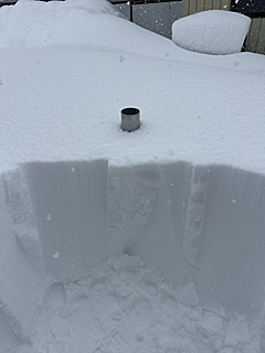 屋上の積雪はこんな感じで、積雪(残雪)は 15cm、融雪ボイラーの灯油使用量は、先週から 26.3 litre でした。