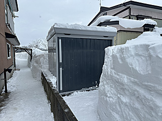 イナバ物置の写真を撮り忘れました。先々週、屋根の雪を下ろしたので、屋根に雪はありません。