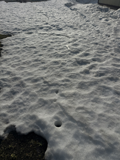 融雪炭を撒いた後にこの雪では、撒いた融雪炭が雪に隠れて融雪効果など無くなる。再度 撒き直しをしないといけない。