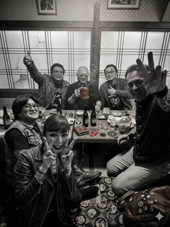 先日(3/19)、北海道の青木さんと飲んだ時の写真ですが、時代劇風・原始時代風・ロック風、簡単に加工出来るんですね。