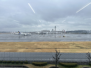 むむっ、飛行機越しに第 1・2ターミナルが見える。