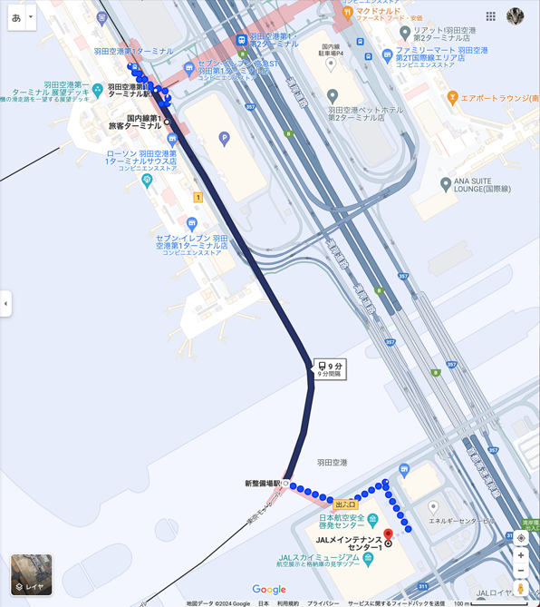 会場の「JAL メインテナンスセンター 1」はピンの所で、羽田空港全体のあの辺りです。