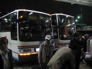 | 朝の 5時です。真っ暗です。出発です。 村山支部は、仙台空港までチャーターバスです。 |