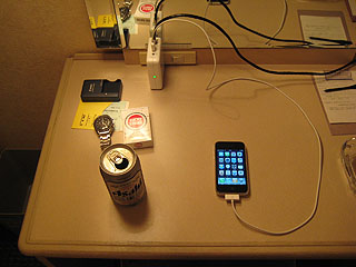 | 徳島ワシントンホテルプラザ ホテルに付いたら、先ずは iPhone の充電です。 AirMac Express で有線 LAN を無線 LAN に・・・ AirMac Express は iPhone の充電も出来ます。 |