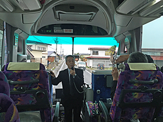 | 東北電力でチャーターしてくれた大型バス 参加者 22名でこの大型バスは、実にゆったり過ぎる。 |