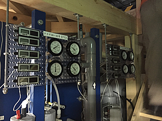 | 各種クラゲの水槽の温度管理盤 種類が多いので水温管理も大変でしょう。 |