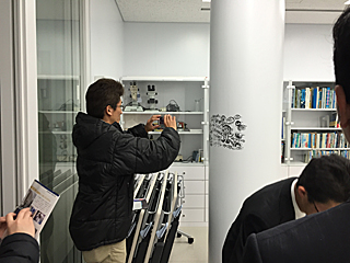 | 奥泉副館長の lecture(講義)を受ける。 何だか人が少なくね?と思ったら、 アシカショーを見に行った人がいるらしい。誰だ? 我々18名は真面目に講義を受ける。 |