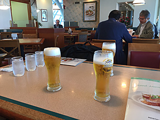 搭乗手続きを済ませ、先ずはビールって感じですかね。