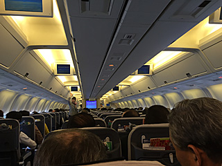 来る時は中央の左通路側だったが、帰りはど真ん中である。