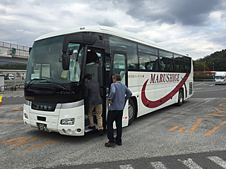 仙台から飛行機で大阪・伊丹空港まで行って、伊丹空港から石川までは貸切バスです。