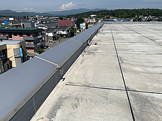 雪庇防止でパラペット笠木と外周 1.5m に融雪設備がある。