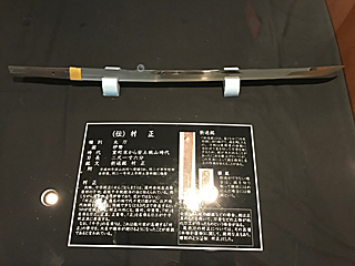 村上市郷土資料館の(伝)村正 村正、本物かどうかは判らない。村正と伝えられている。 よって(伝)村正らしい。 |