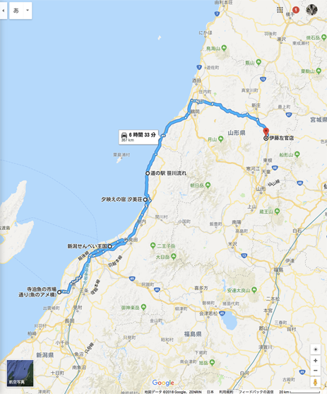 帰路:見学も何もしないと、367km(6時間33分)の距離です。
