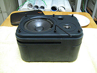 中には吸音材がこんな感じで適当に入っている。 JBL にしては、やっつけ仕事だな・・・ |