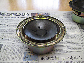 スピーカーのエッジがボロボロに成っていたのだ。なるほど、これでは音もビビる訳である。