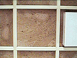 なかなか目の細かいケヤキの天井板である。と言っても無垢ではなく合板だ。
