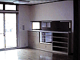 カウンターの造り付け収納家具は、若奥さんのデザインである。