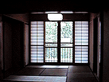 奥の扉はスエーデン製の断熱ドアで、本堂への渡り廊下との仕切りである。