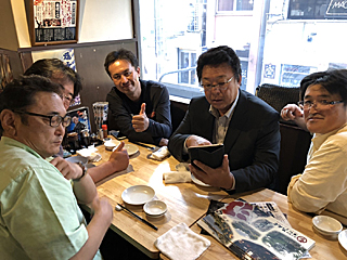 出発の日、少し肌寒さの残る朝だった。山形駅 8時発の山形新幹線をホームで一人待つ。山形駅からの乗車は私だけである。他のメンバーは、先にそれぞれ最寄りの駅から乗車予定である。8時少し前、到着した山形新幹線に私は乗車した。寺崎さんと伊藤さんは、既にほろ酔い気分の様子だった。天野さんは少し抑え気味で、お酒を飲めない三浦さんは会話に混ざらず一人静かに iPad を弄っていた。大類夫妻は我々とは別車両(グリーン車)に乗っている。山形新幹線で東京駅まで行き、東海道新幹線に乗り換えて浜松駅で降りる。約 6時間の長旅だった。