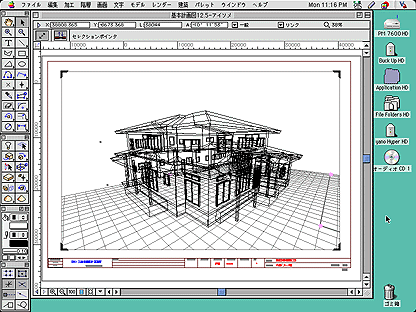 作業図面とアップルメニュー、パーテイションで分けたハードディスクとBGMのCDです。