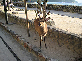 宮島に上陸すると「鹿」が出迎えてくれる。