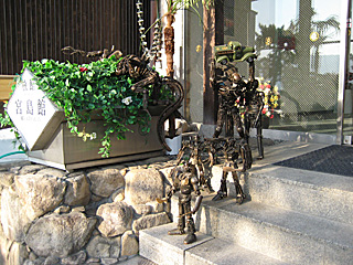 旅館の玄関にエイリアンとマジンガーZの模型が置いてあった。