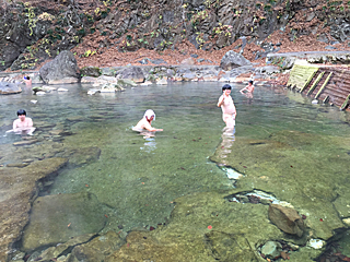 | 川なので、熱い所と温い所がある。 川なので、深い所と浅い所がある。 川なので、露天じゃなくて野天です。 私は風邪気味なので遠慮したが、やっぱり入るべきだった。 |