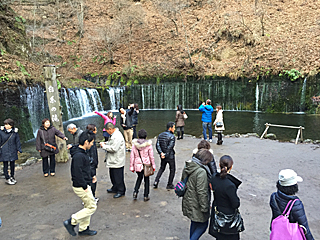 | 白糸の滝(長野県北佐久郡軽井沢町) 山形県にも白糸の滝はあるが、この白糸の滝は素晴らしい。 高さ 3m 程の小さい滝だが、幅は 70m あるらしい。 これは、見に来て良かったと思った。 |