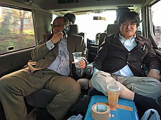 | no image | 運転席と助手席は、三浦さんと大類くんの二人で、 二人は交代で運転をしてくれた様だ。 後部座席の天野さん、寺ちゃん、私の三人はと言うと、 群馬までずーっと飲みっ放しだった。 今更だが、三浦さんと大類くんのお二人に感謝申し上げる。 |
