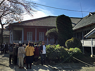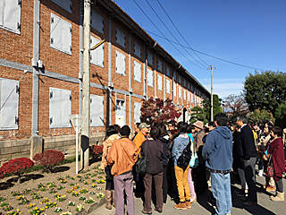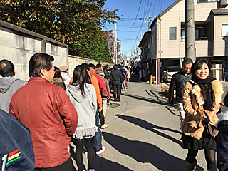 | 何だ?この行列は・・・、富岡製糸場の前です。 10時でこの行列ですか、流石は世界遺産って感じ・・・ 今日は日曜日ですからねえ。 |