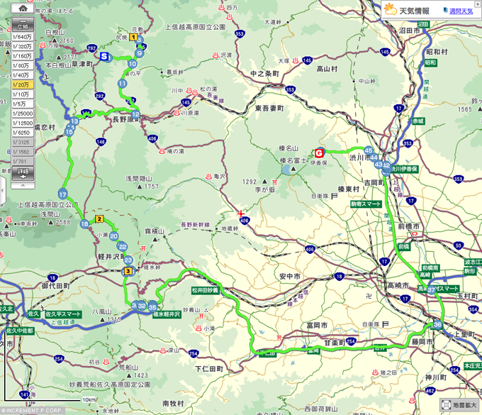 さて、草津温泉から伊香保温泉までのルートをお浚いしましょう。物凄〜く遠回りです。