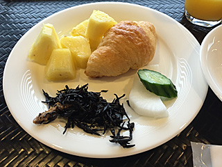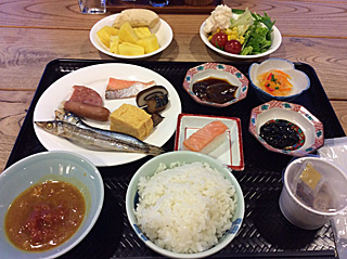 朝から元気な三浦さんの朝食は、こんな感じ・・・ 朝から宴会か?って感じですね。 [Photo by Miura] |