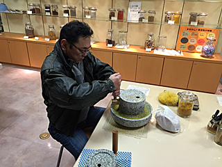くすりミュージアム (富山ステーションフロント CiC 5階) 店が開くまで暇つぶし、くすりミュージアムを見学する。 富山の薬は、こうして石臼で挽いて作るのだよ。 |