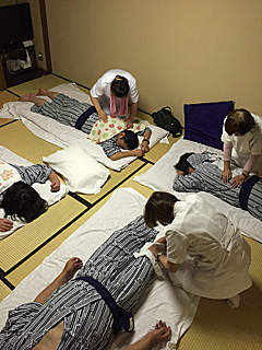 日左連青年部幹事の大類さんが幹事会に出ている間、 我々は風呂上がりのマッサージを受ける・・・ 40分(4,000円)でした。 |