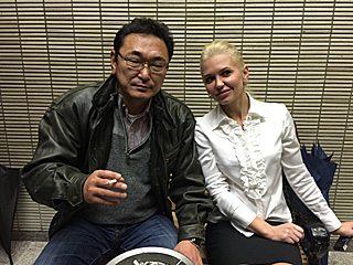 私は、改札口の女性駅員さんとツーショット! 流石に素面では腹を出しません。 |